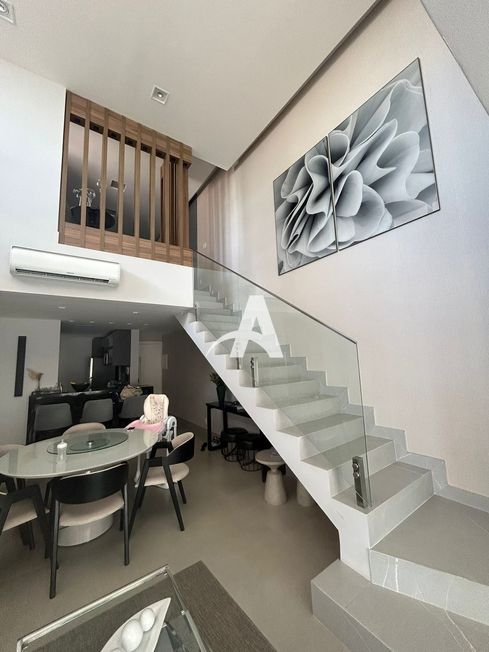 PRIMEIRO PISO: Sala Ampla em 02 Ambientes, com sofá, mesa de centro, ar-condicionado, poltronas, lavabo, 03 Quartos sendo 03 Suítes com camas e ar-condicionado, Suíte do Casal com Closet, Lavanderia, Depósito