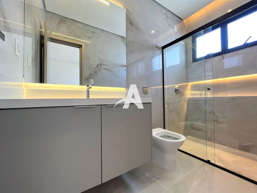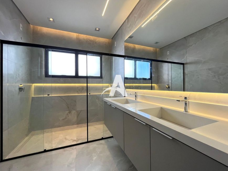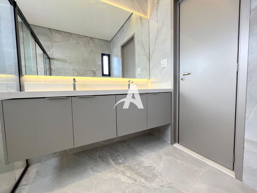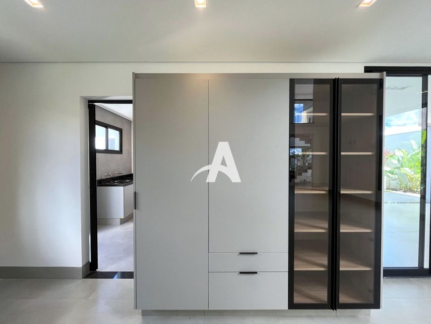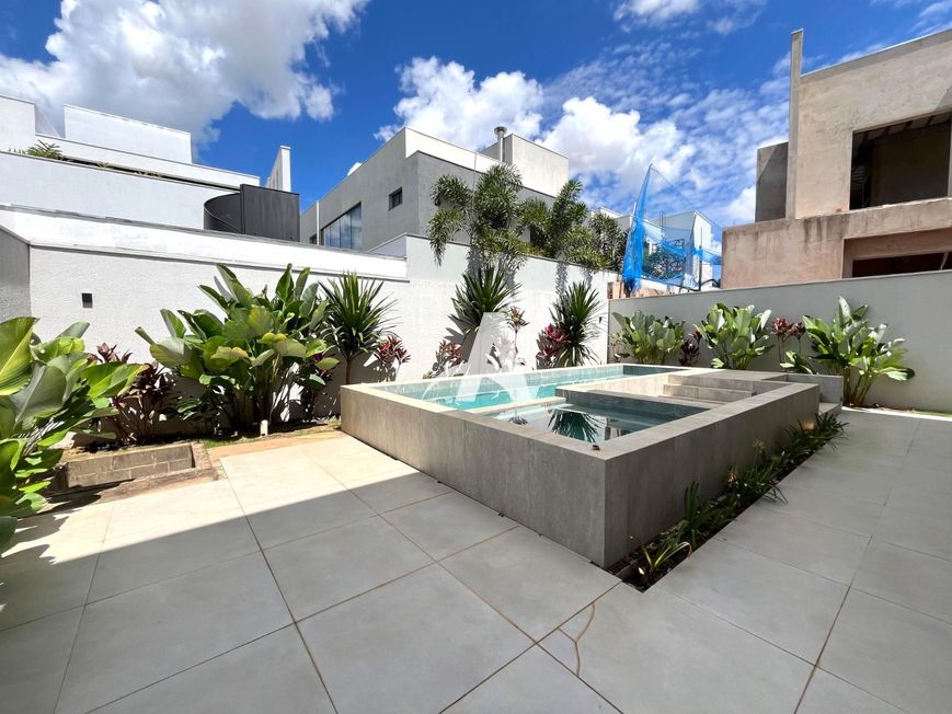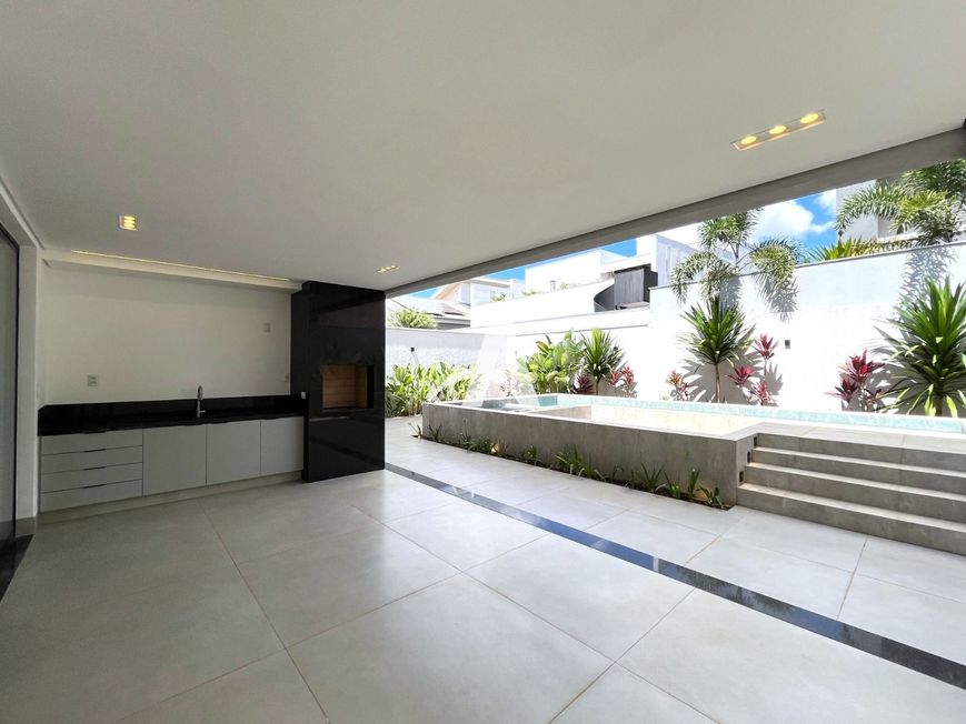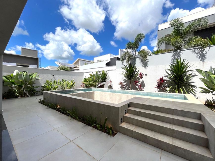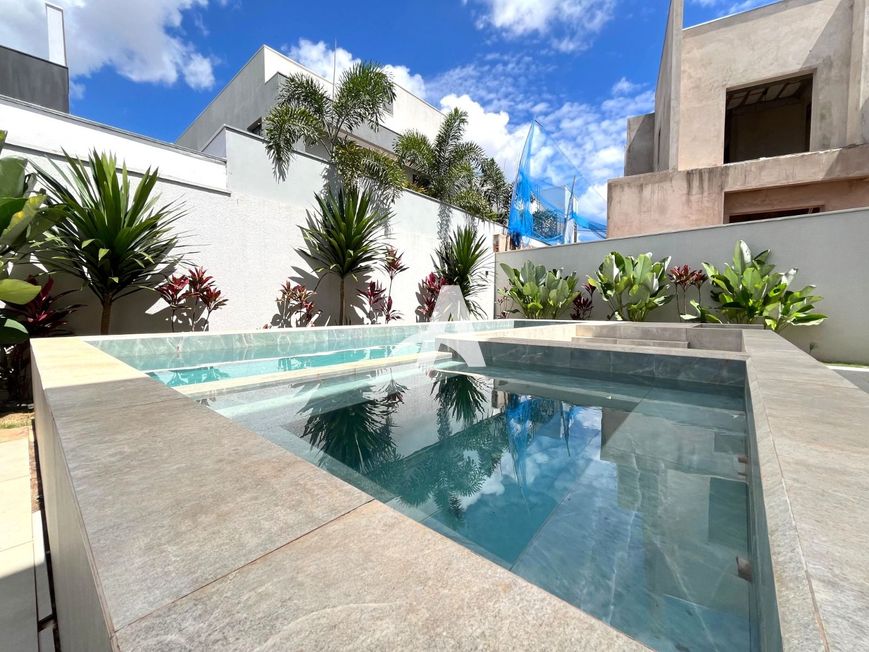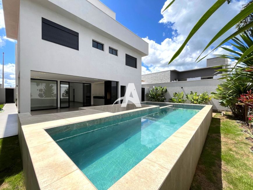 Casa estilo sobrado em condomínio localizada no bairro Cidade Jardim, com pé direito duplo, sala ampla em 02 ambientes, lavabo, cozinha toda montada com cristaleira, lavanderia, área de serviço, área gourmet, quarto de despejo, piscina, banheira de hidromassagem, jardim, piso porcelanato