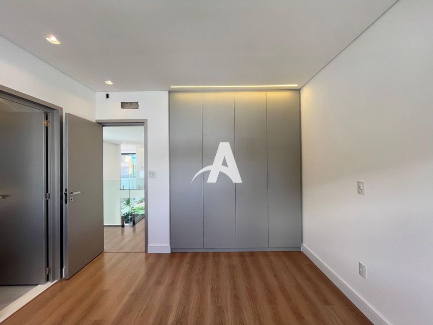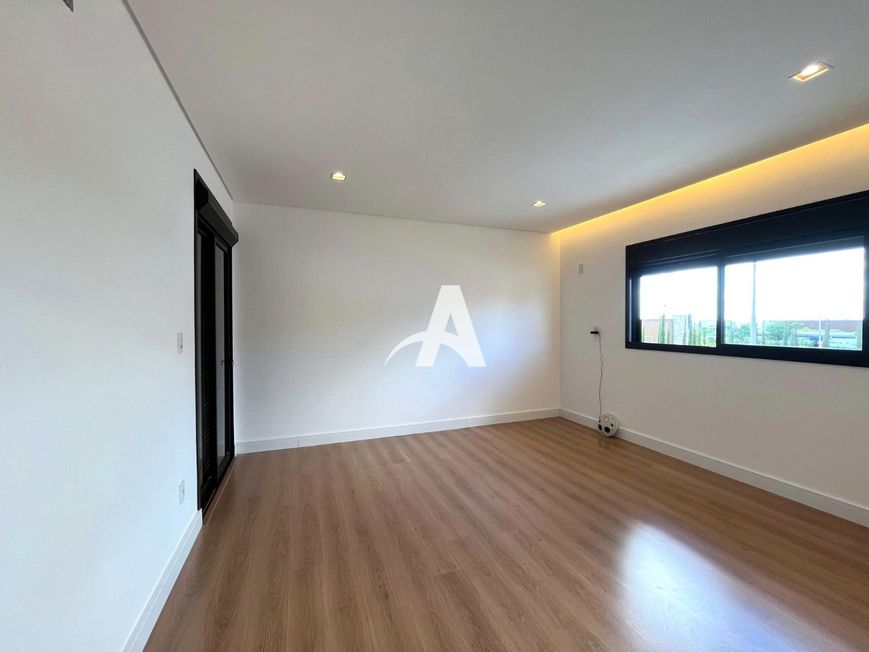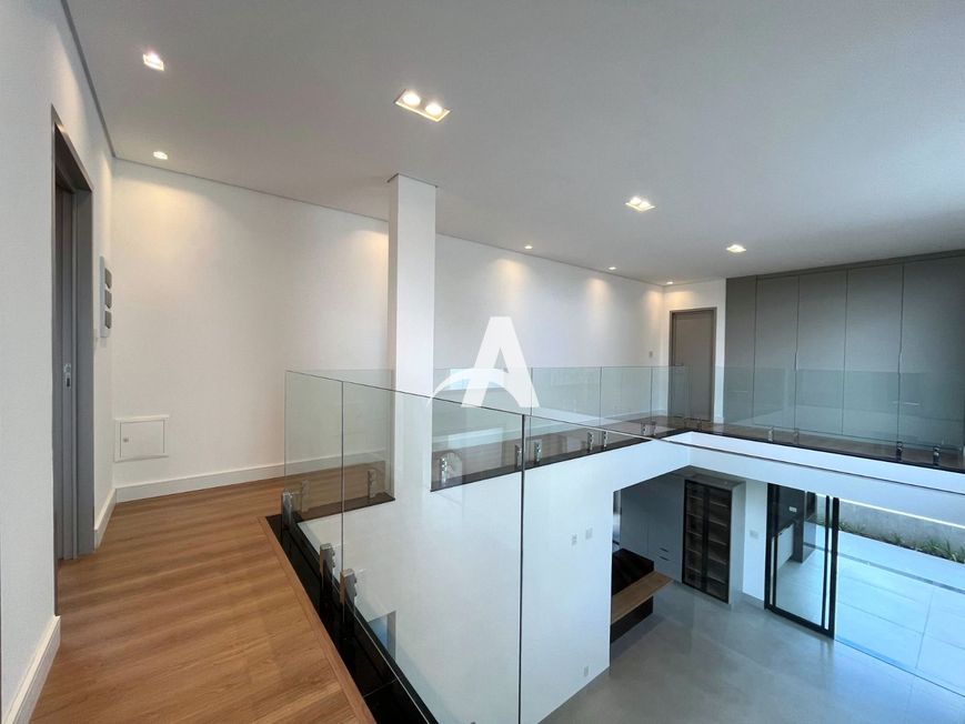 Piso superior com 03 suítes master com closet, escritório, garagem coberta para 02 carros