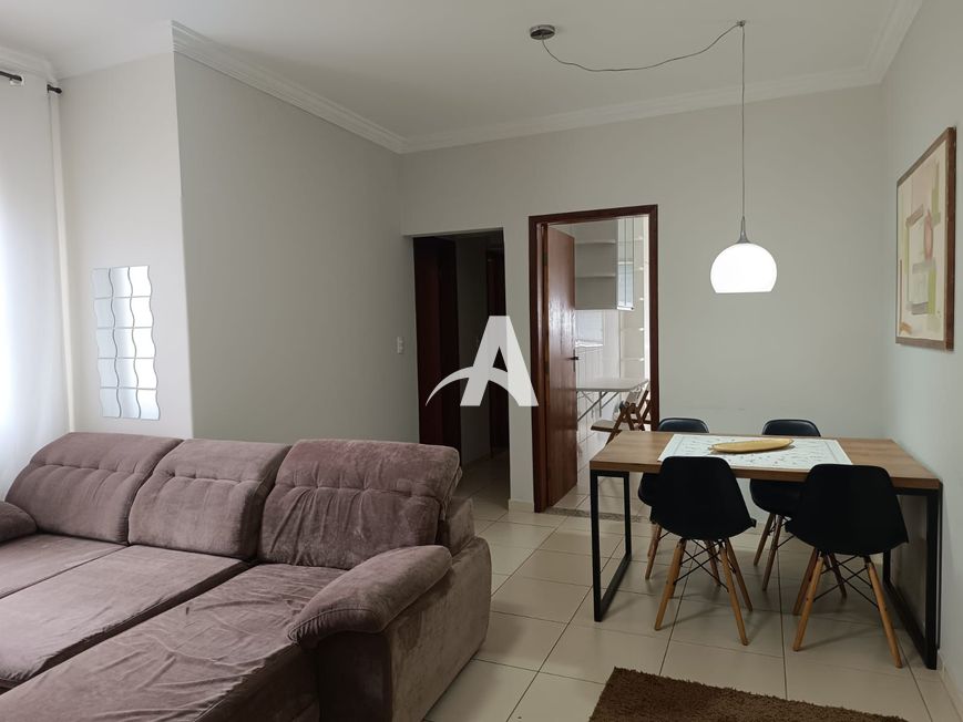 Apartamento mobiliado localizado no bairro Santa Mônica, com 02 quartos, sendo 01 com ar-condicionado, banheiro social com box e armário, cozinha conjugada com área de serviço, ambas com armários, e 01 vaga de garagem