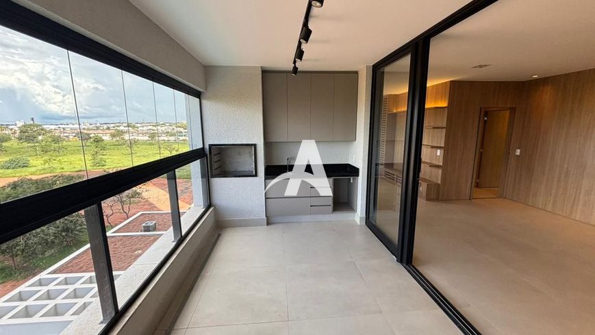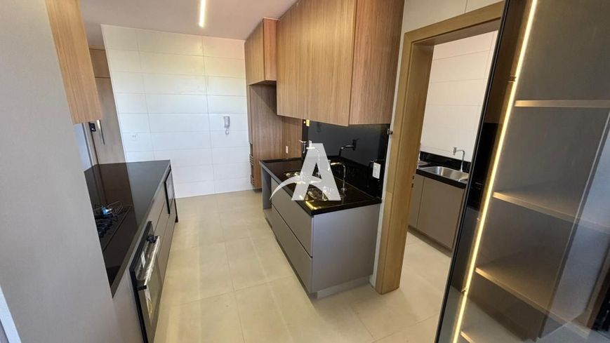 Sala ampla para 03 ambientes, climatizada.Varanda gourmet com churrasqueira e fechamento em vidro.Cozinha planejada com cooktop, forno e depurador. Lavanderia com armários. Projeto de iluminação e móveis planejados em todo o apartamento